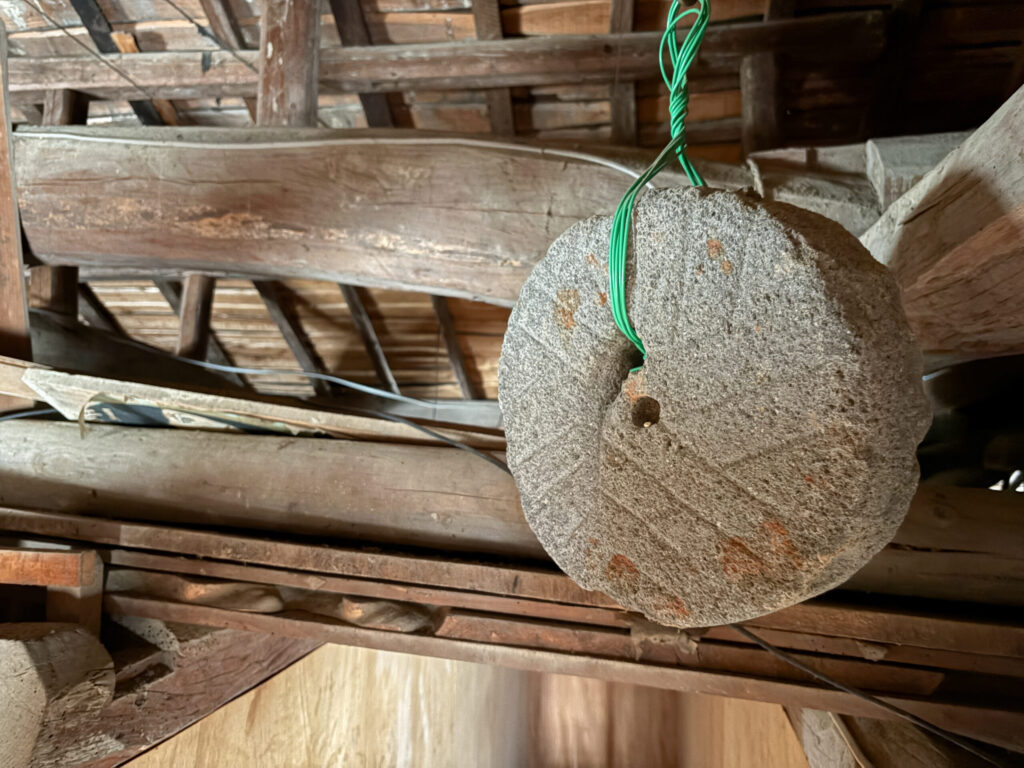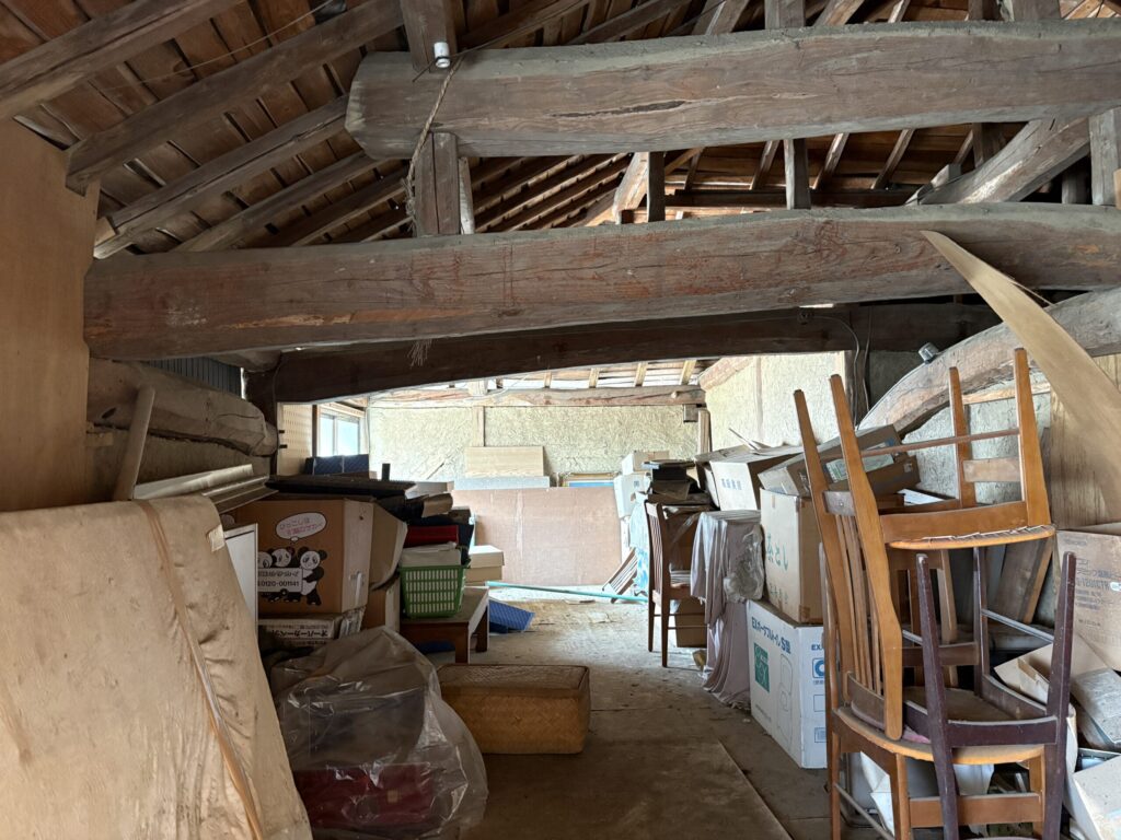 屋根裏には収納部屋があり、立派な梁が見え隠れ。